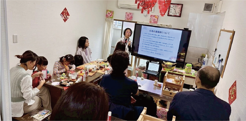 「台湾茶認定」、台湾&日本の「国家製菓資格」や「薬膳認定」などの資格を活かして、さまざまな出張講座を提供しております。台日の食文化、伝統文化などの紹介を通して、多文化共生を学ぶ活動に積極的に携わっています。